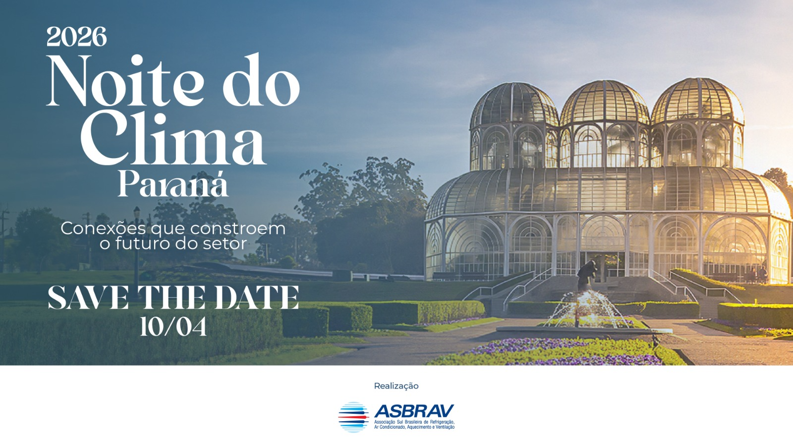 É com grande entusiasmo que a ASBRAV – Associação Sul Brasileira de Refrigeração, Ar Condicionado, Ventilação e Aquecimento convida a todos para participar como patrocinadora de mais uma edição da Noite do Clima – Paraná 2026, que será realizada no dia 10 de abril de 2026, em Curitiba/PR.